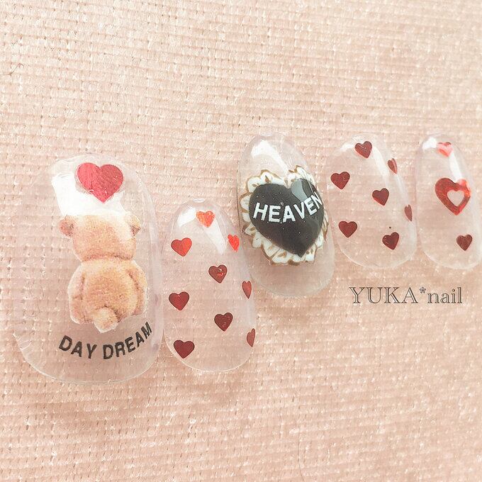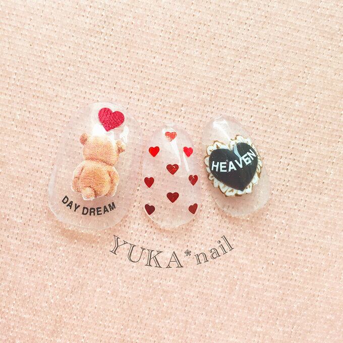 ふわふわ/ガーリー/テディ/テディベア/ハートネイル/アニマルネイル/ハート/くま/大きめ/キラキラ/大人ネイル/春夏秋冬/