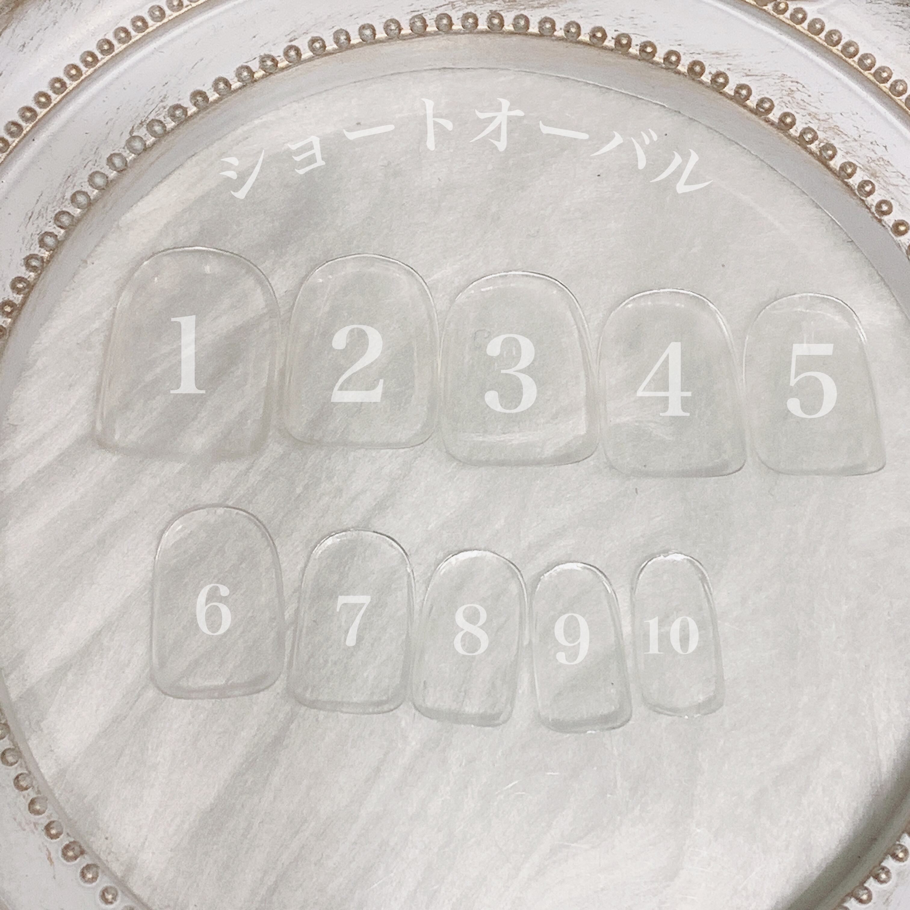 *お爪のサイズを測っていただき、商品ページのサイズ表から大きさに合う番号をお知らせください。